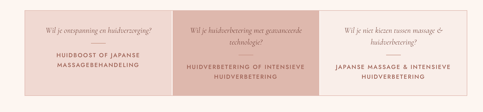 Een diep ontspannende behandeling met Japanse Kobido en Kirei gezichtsmassagetechnieken. Kobido sculpt en lift terwijl Kirei zorgt voor diepe ontspanning. De behandeling wordt volledig afgestemd op jouw huid voor een zichtbaar resultaat: Vitamine C, lifting & stevigheid, anti-rimpel, diepe hydratatie, zuurstof, anti-age, egalisering of barrièreherstel.